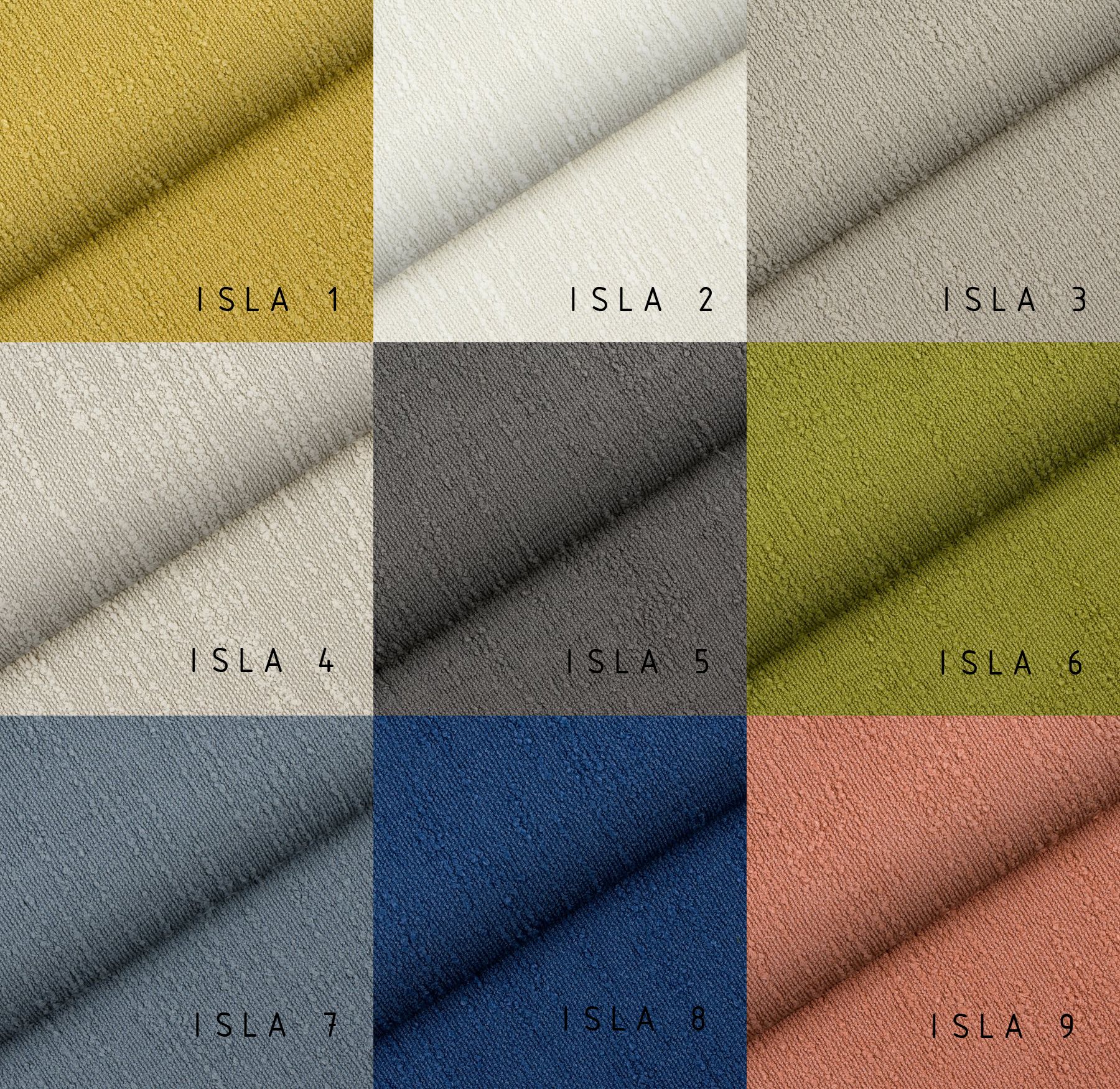 Ein Bouclé-Stoff, dessen Einzigartigkeit durch seine besonders ausgeprägte Webart hervorgehoben wird. Der Stoff besteht aus recyceltem Polyester und zeichnet sich durch eine hohe Lichtbeständigkeit aus. Er wird aus Garnen einer Farbe, aber mit unterschiedlichen Stärken gefertigt. Isla lässt sich perfekt mit glatten Strukturen kombinieren und passt ebenso gut zu